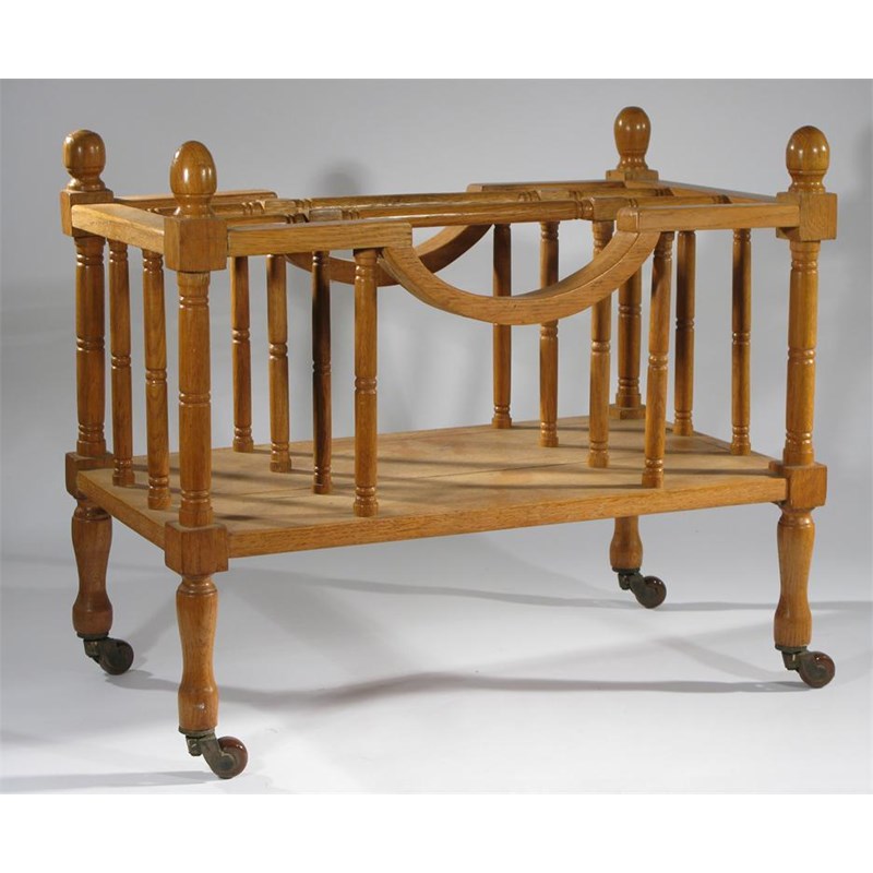 An Arts and Crafts oak canterbury etched R B S 1881 60 x 34 cm.