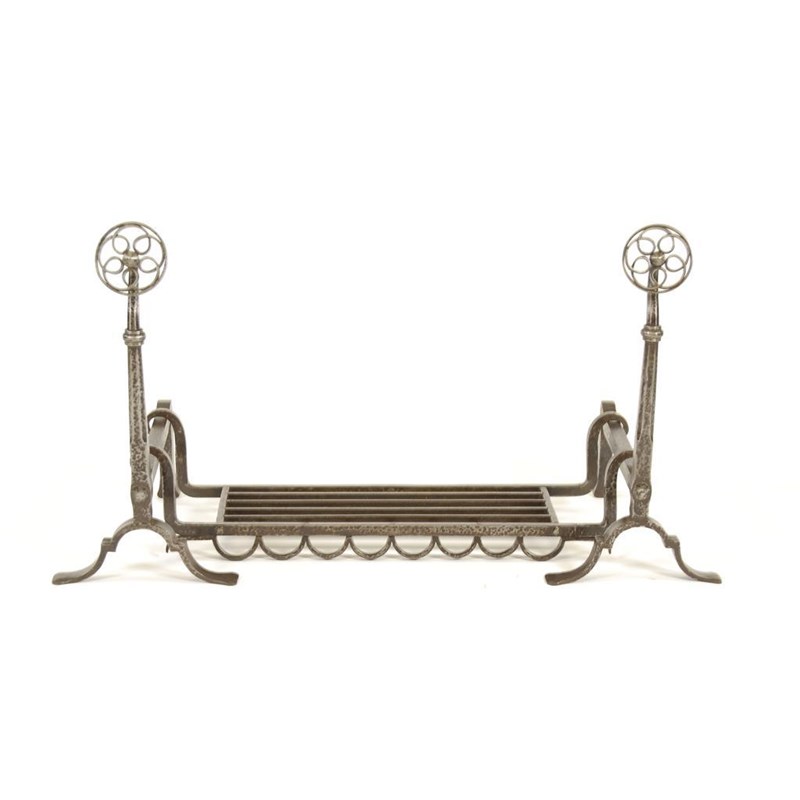A Cotswolds School burnished steel fire grate unsigned 85cm. wide