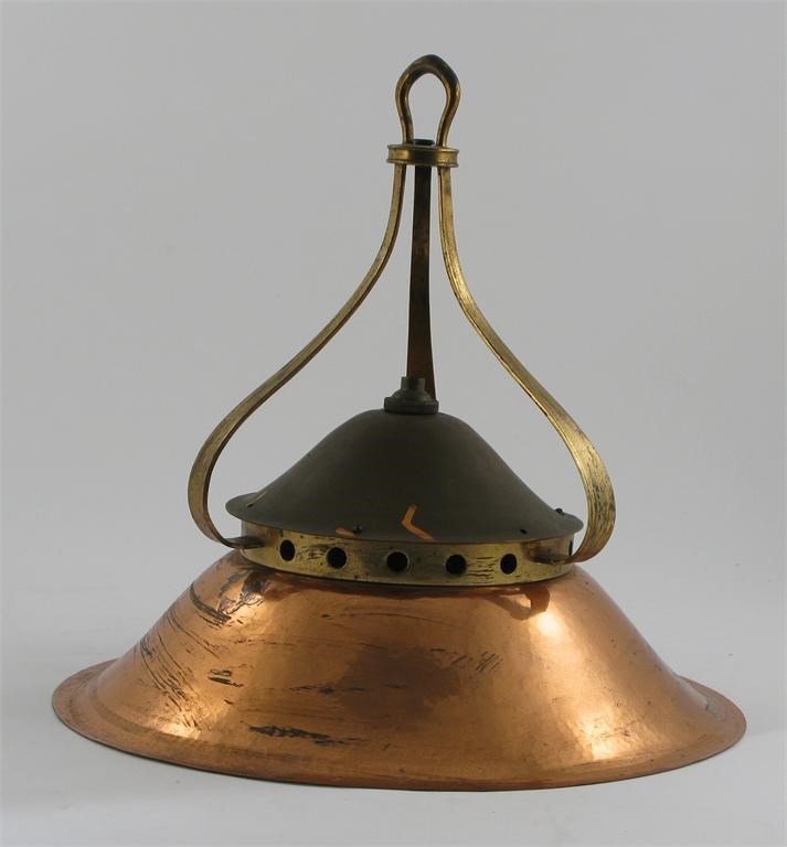 A copper and brass hanging lantern probably Birmingham Guild of Handicraft unmarked 36cm. high