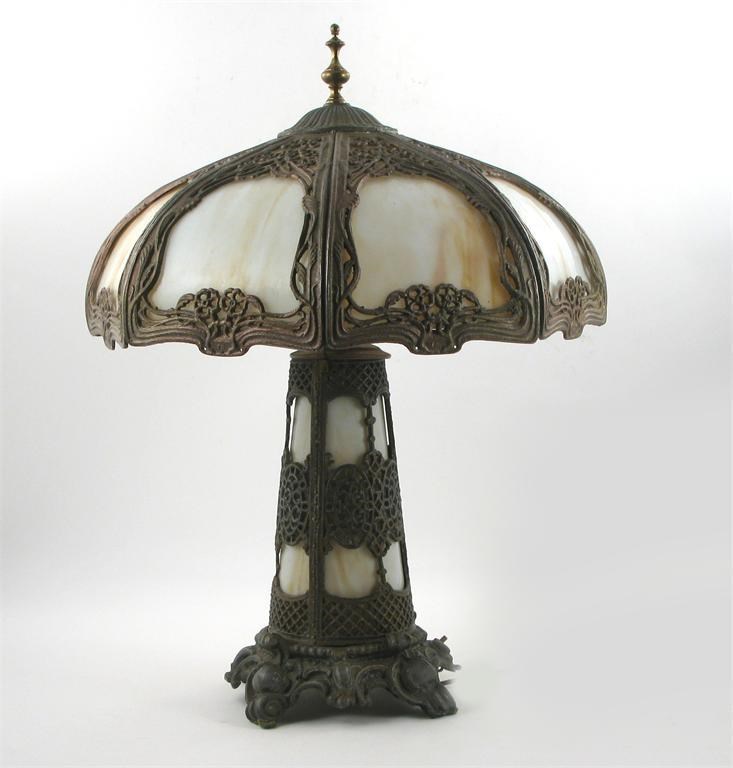 An American patinated metal and glass table lamp