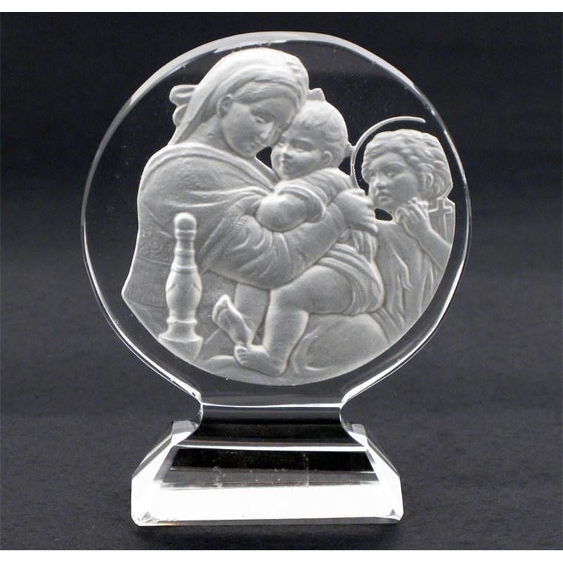 A modern Lalique clear and frosted glass paperweight, intaglio cast with the holy family unsigned 11cm. high