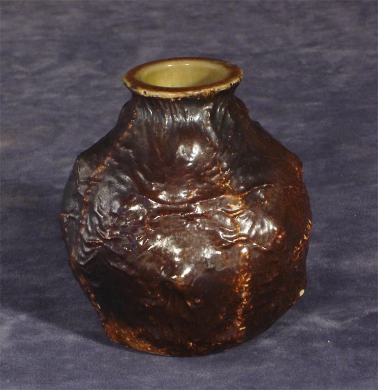 A Martin Brothers stoneware miniature gourd vase covered in a brown glaze incised Martin London & Southall, indistinct date 190 7cm. high