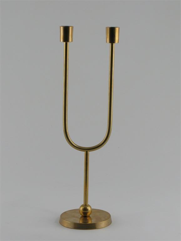 A Hagenauer brass twin-branch candlestick stamped marks 40cm. high