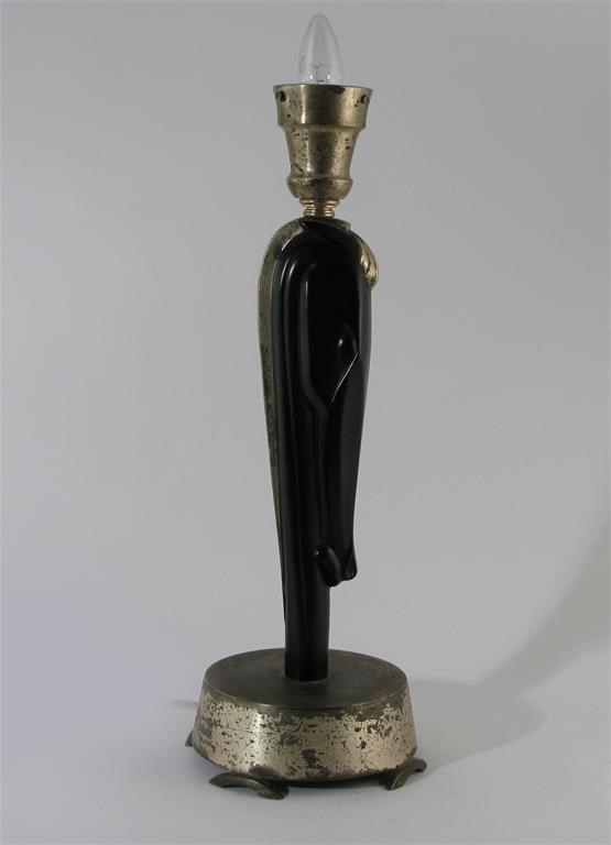 A patinated metal table lamp modelled as a stylised elongated horse head unsigned, the fitting stamped Colonial Premier Co. 53cm. high