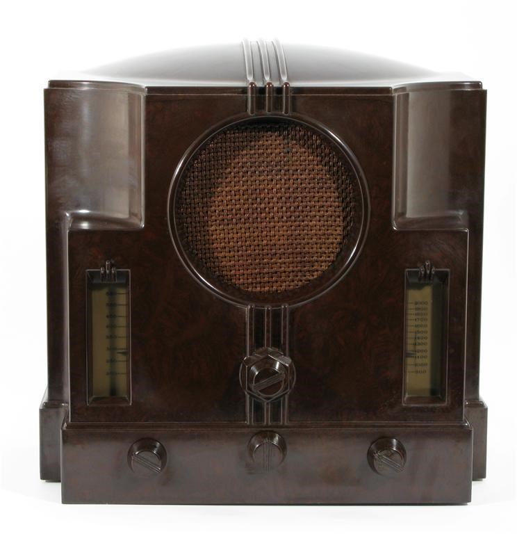 A Co-operative Wholesale Society 'Defiant' radio model M900, brown bakelite printed factory label 34cm. high Literature Jonathan Hill Radio Radio private press, figure 481 page 140