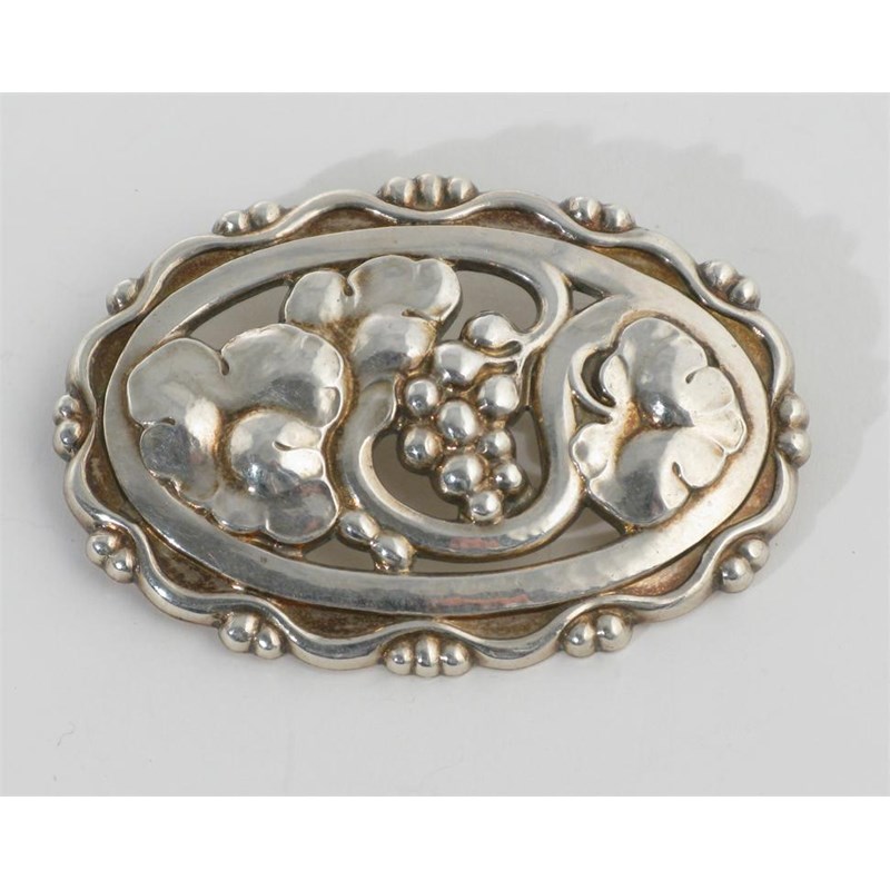A Georg Jensen silver brooch model no. 177A, cast as a pierced fruiting vine stamped marks 6cm. wide
