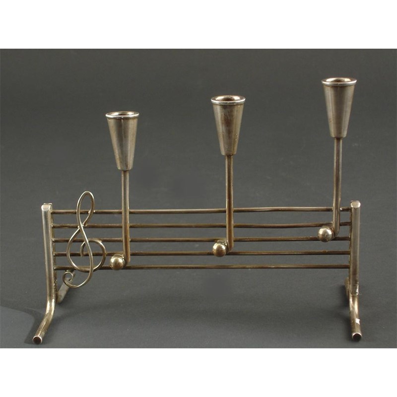 A Danish novelty electroplated candleholder modelled as musical notes stamped marks 17.5cm. wide