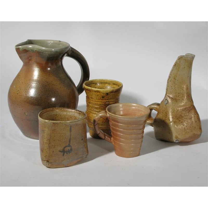 A Svend Bayer salt-glazed stoneware jug, a Gurli Hjorth vase and three others various marks 18cm. high