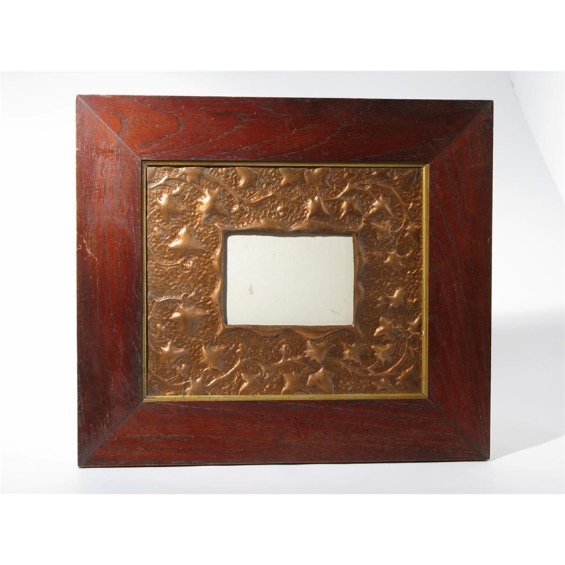 An Arts and Crafts copper picture frame stamped in low relief with ivy