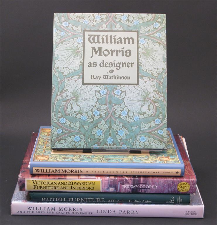 Five books on William Morris and Arts and Crafts Furniture comprising William Morris as Designer by Ray Watkinson, William Morris by Stephen Coote, William Morris by Linda Parry, British Furniture by Pauline Agius and Victorian and Edwardian Furniture and Interiors by Jeremy Cooper