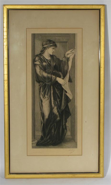 'Sibylla' a Thomas Agnew print, published 1882, after Sir Edward Coley Burne-Jones, framed printed marks, signed in pencil image 44 x 17.5cm.