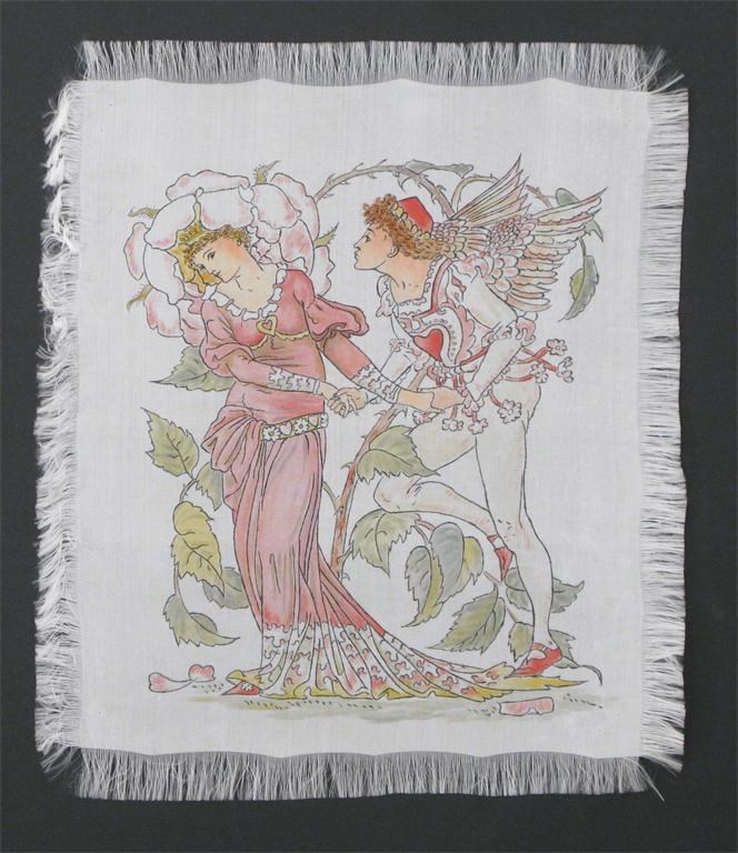 A set of twelve Flower Fairy silk paintings after a design by Walter Crane probably manufactured by Thomas Wardle & Co for retail at Liberty & Co. unsigned 19 x 16cm. Literature Walter Crane Artist, Designer and Socialist Lund Humphries page 126 catalogue H5 for comparable examples.