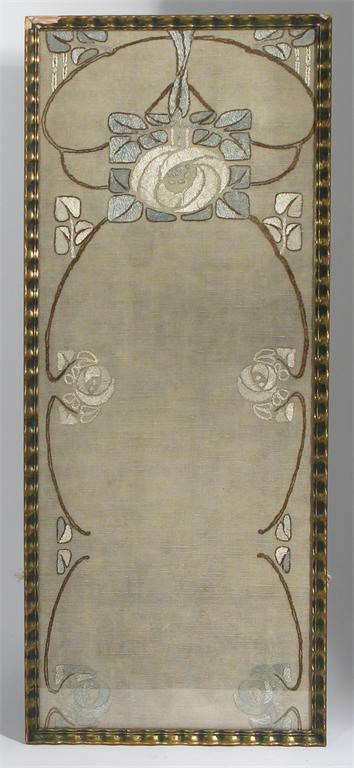 A Glasgow School silk embroidered panel depicting roses, framed 63 x 25cm.