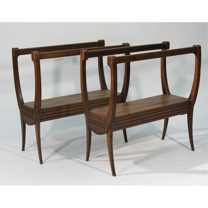 A pair of Aesthetic Movement oak portfolio stands with simple carved decoration unsigned 80cm wide
