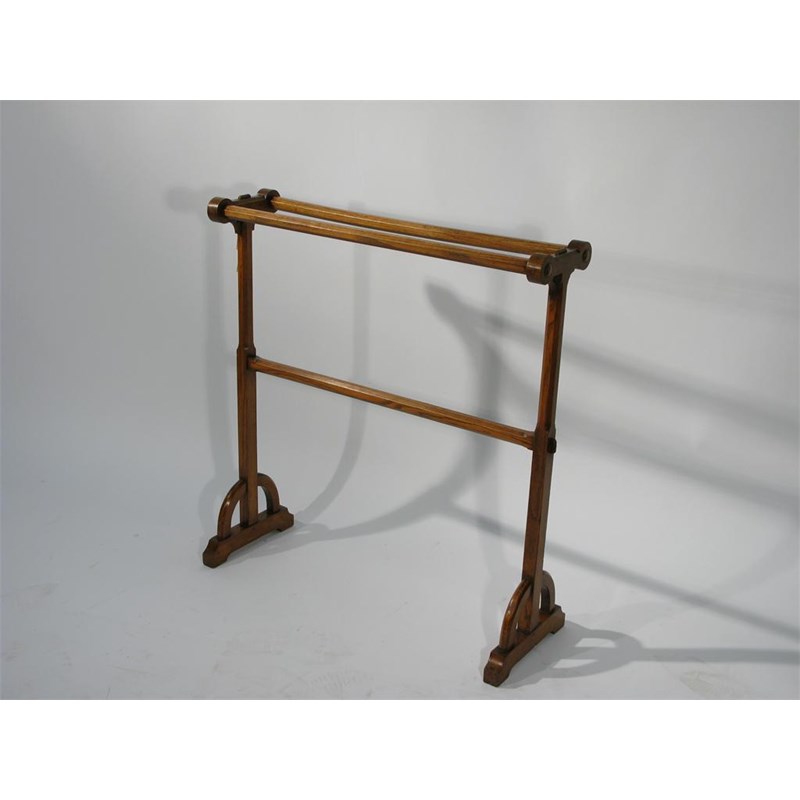 A carved oak towel rail designed by Bruce Talbert
