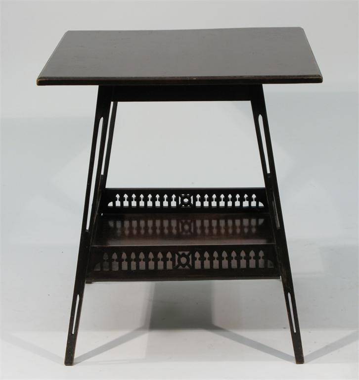 A Liberty & Co Moorish side table square section with pierced rail applied Liberty label 65cm. high