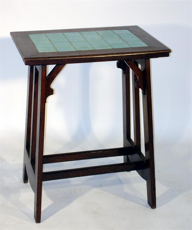 An Arts and Crafts oak and tile side table probably retailed at Liberty & Co