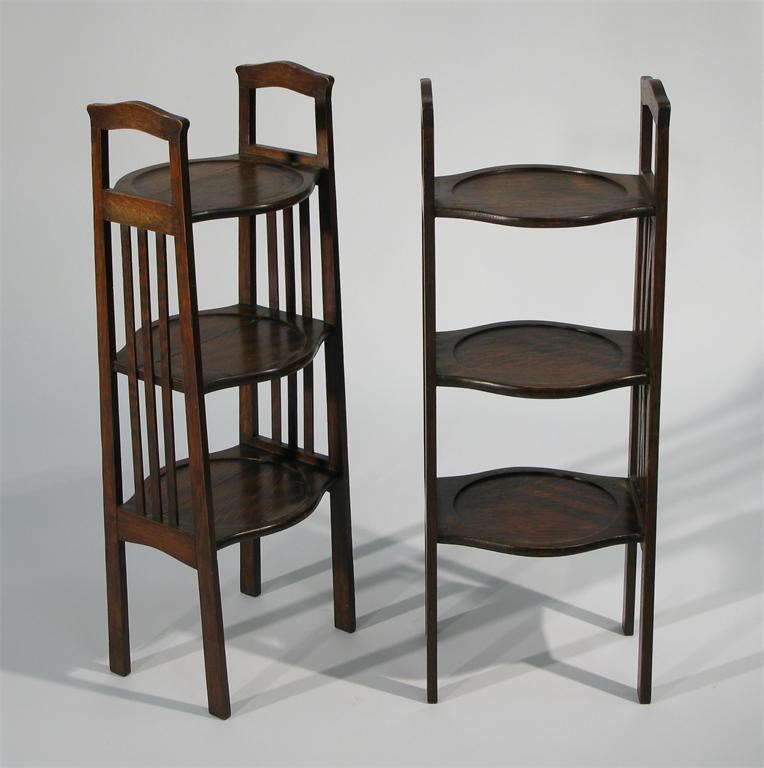 A pair of Liberty & Co three tier plate stands one with Liberty label 80.5cm. high