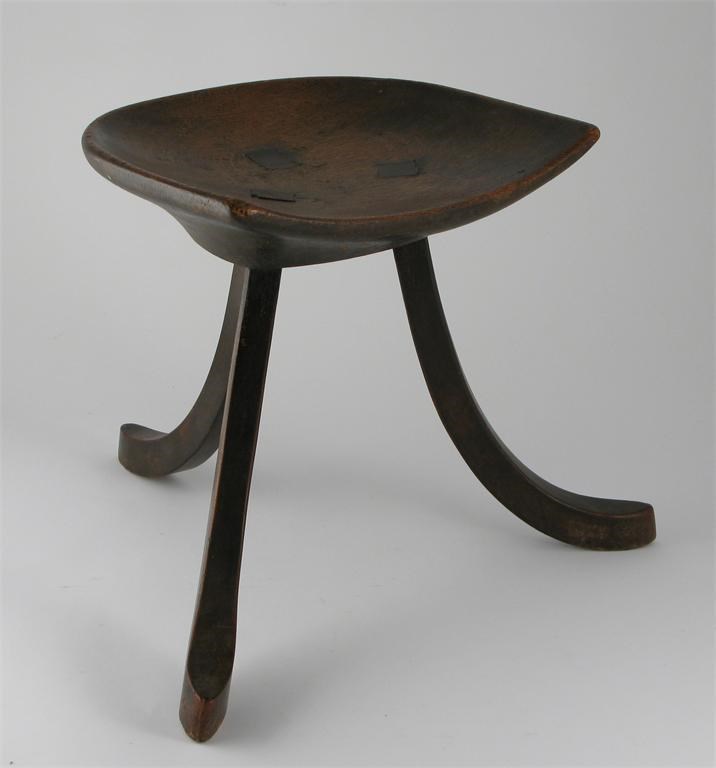 A Liberty & Co Thebes stool tripod leg with shaped seat unmarked 36cm. high