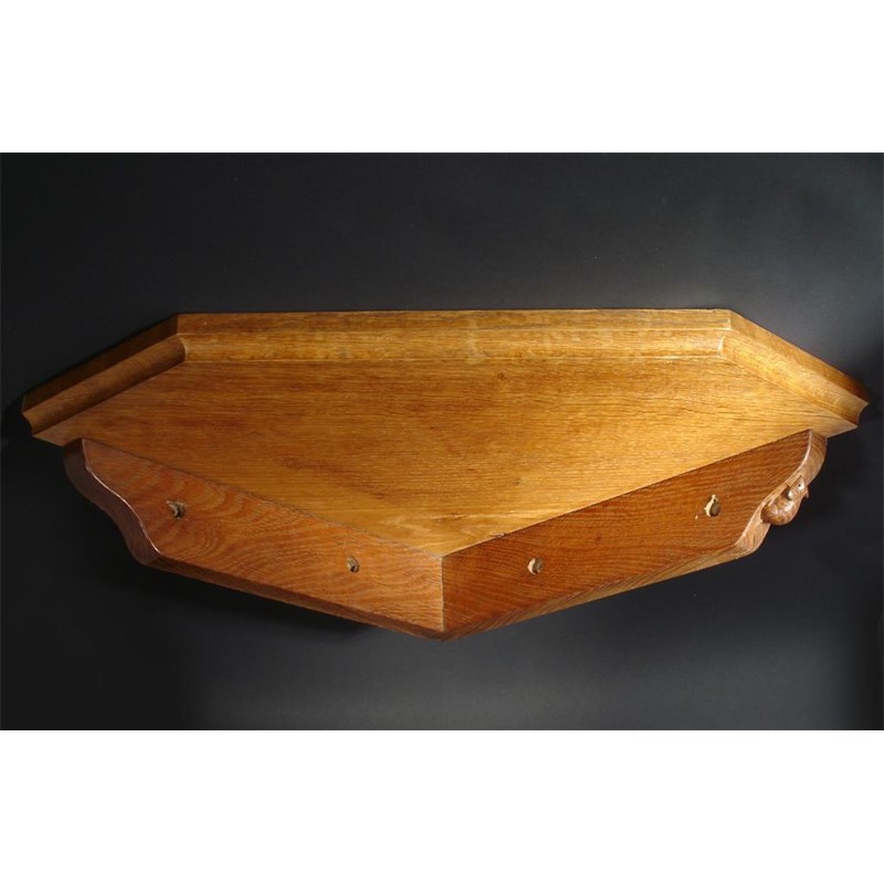 A Robert Mouseman Thompson oak corner shelf with carved mouse signature 64.5cm. wide