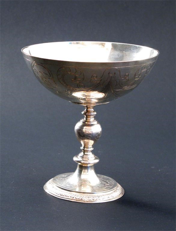 A Richard Comyns silver chalice engraved with wild rose and thistle swags, stamped marks, London 1929 14.5cm. high