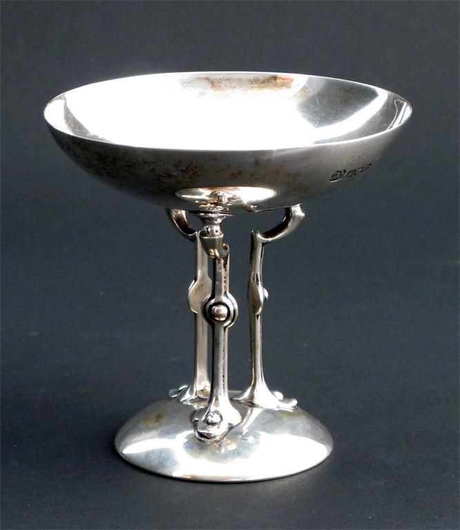 A Pearce and Sons silver tazza domed foot supporting tripod stem and domed bowl stamped marks, London 1908 11.5cm. high