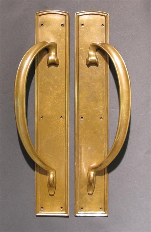 A pair of W T & S brass door handles stamped marks 45cm. high