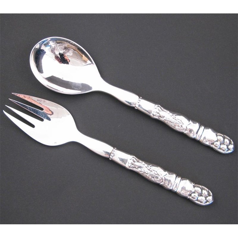 A pair of Georg Jensen Ornamental silver servers model no.54 stamped marks 21.5cm. long