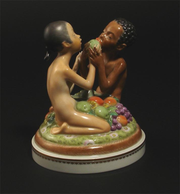 'Adam & Eve' a Royal Copenhagen figure group model no.1997, designed by Hans Hansen, in colours printed marks 14cm. high