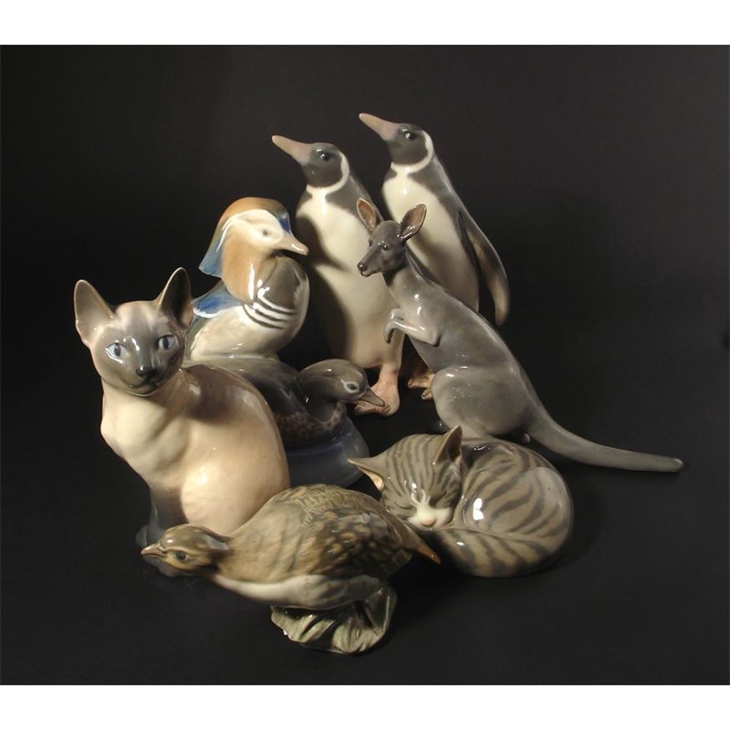 'Mandarin Ducks model 1863 a Royal Copenhagen figure group, designed by Peter Herold and a large collection of Copenhagen animals and birds printed marks, minor damages Mandarin Ducks 19cm. high