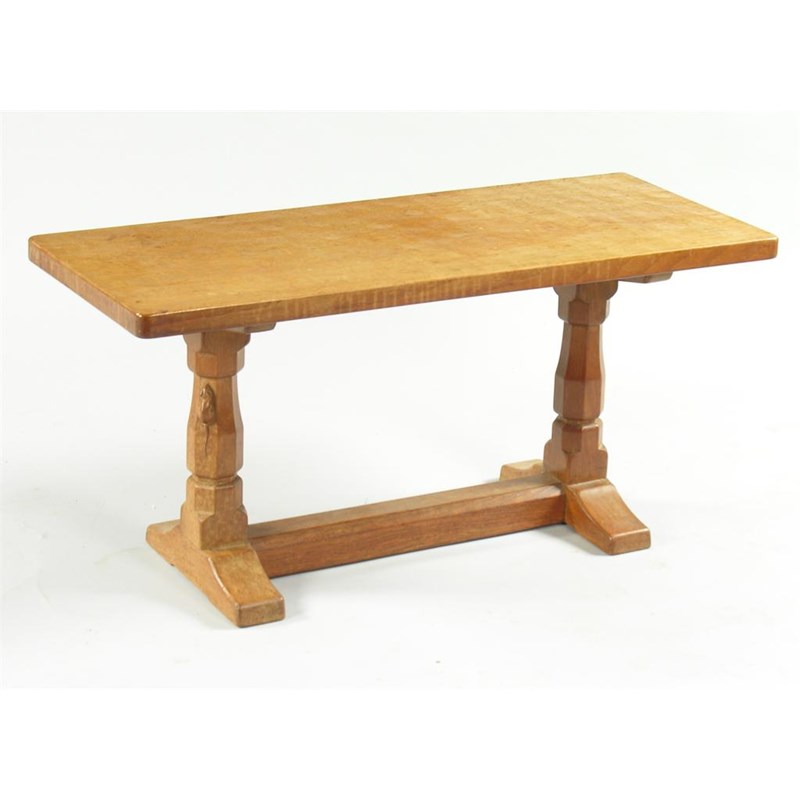 A Robert 'Mouseman' Thompson, Kilburn, oak side table rectangular section, with carved carved mouse signature 91cm. wide