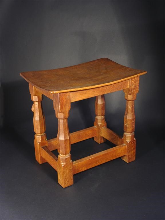 A Robert 'Mouseman' Thompson oak stool adzed seat