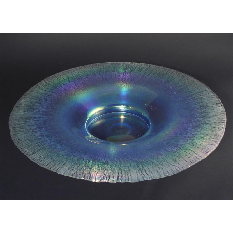 A large W.M.F glass dish covered in a pale iridescence, and two smaller unmarked 45cm. diam.