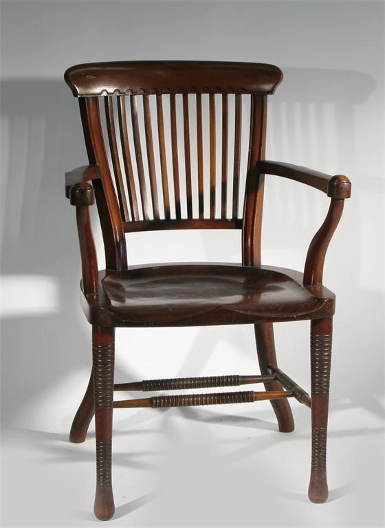An Aesthetic Movement armchair in the style of E W Godwin, with turned legs unsigned 86cm. high