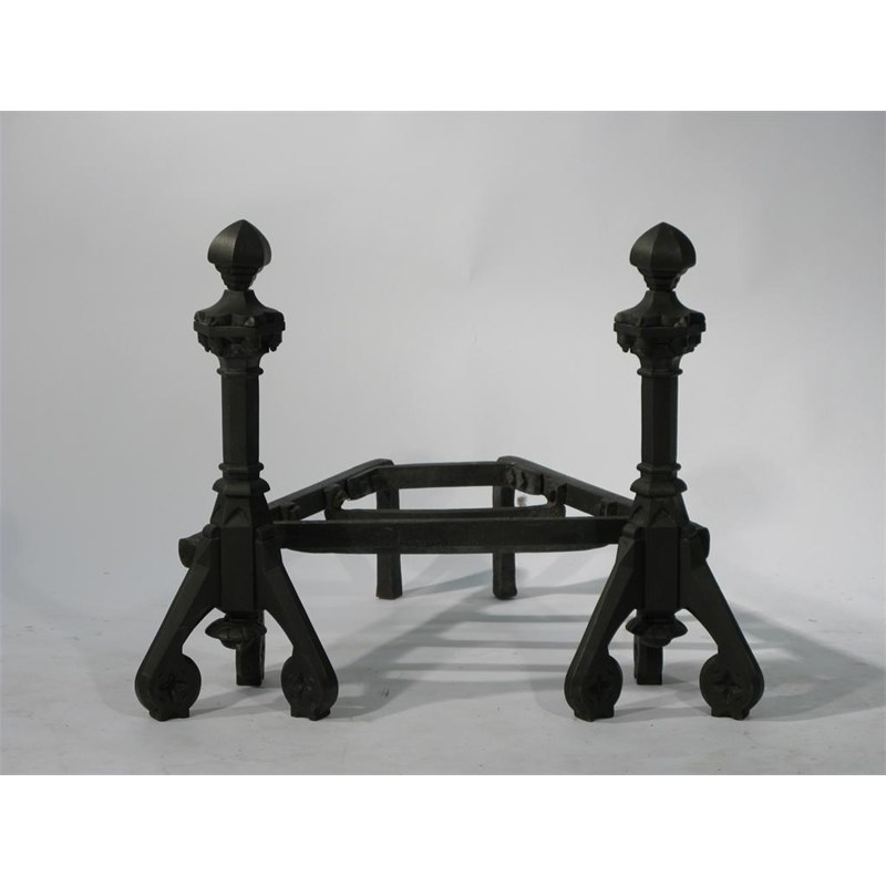 A large Gothic Revival iron fire grate architectural form unsigned 60cm. high, 67cm. wide