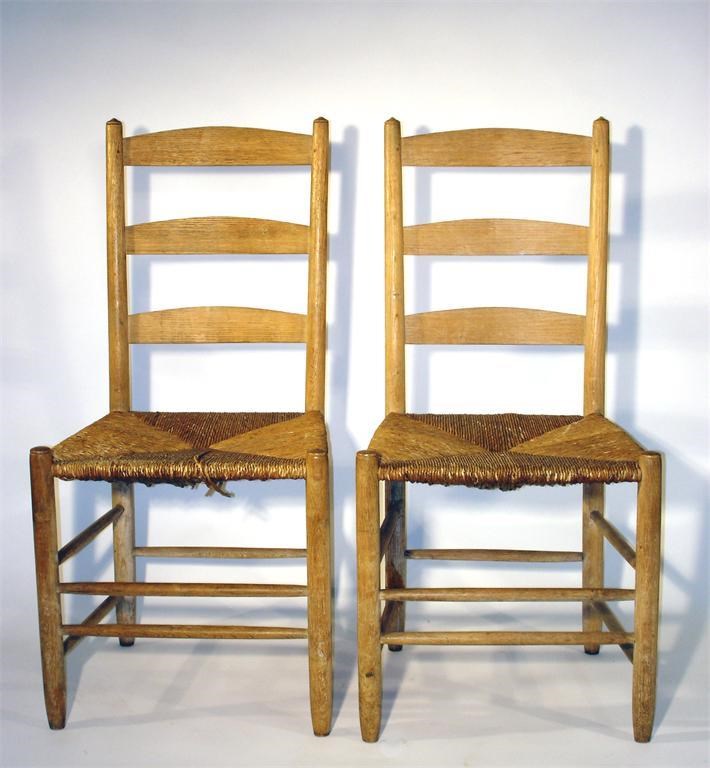 A pair of Cotswolds school ash ladder back chairs probably Philip Clissett, with rush seat unmarked 97cm. high