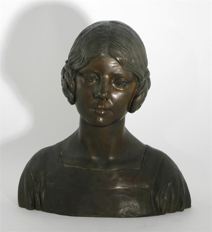 A patinated bronze bust of a young lady cast from a model by George Thomas signed in the bronze and dated 1924 43cm. high