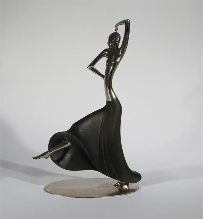 A Hagenauer wood and silvered bronze figure of a Spanish dancer on elliptical base stamped marks to base 32cm. high Literature Fine Decorative Arts Sotheby's London 6th May 2005 lot 127 for a similar dancing figure