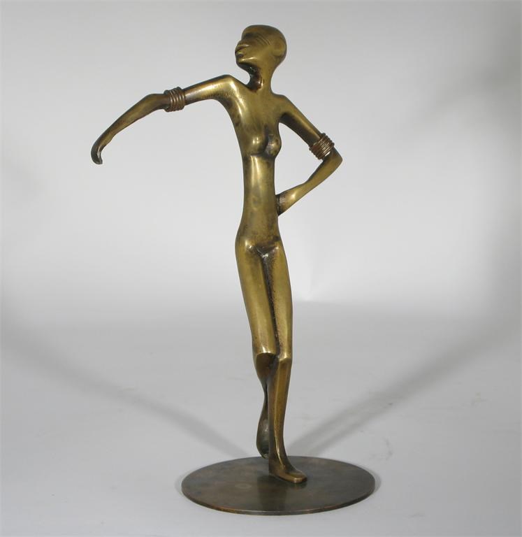 A Hagenauer patinated bronze figure of a dancer on circular base stamped marks 25cm. high