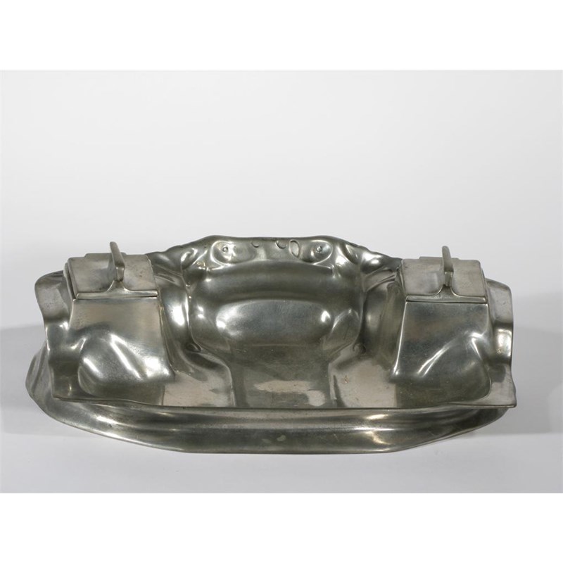 A Kayzerzinn pewter double inkwell, designed by Hugo Leven, model no.4604, stamped marks 32cm. wide Literature Brohan Museum Modern Art of Metalwork page 207 catalogue number 192