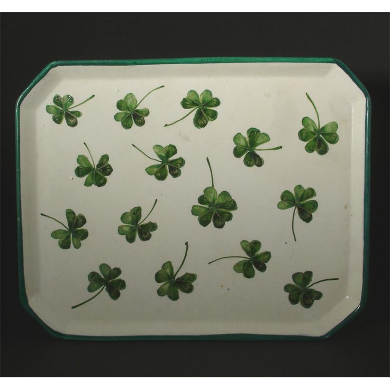 'Clover' a Wemyss Ware shaped rectangular dish painted in shades of green impressed Wemyss mark