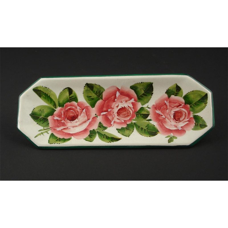 'Cabbage Rose' a Wemyss pottery pen tray painted in shades of pink and green on a white ground...