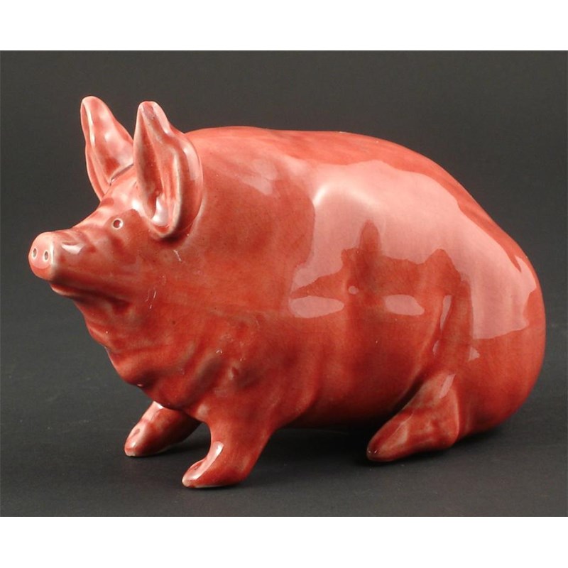 A Wemyss pottery pig covered in a pink glaze impressed marks, 16cm. wide