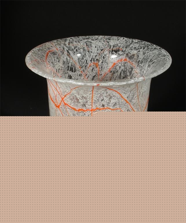 A Loezt Schaum glass vase clear glass internally decorated with white and red pigment abstract design unmarked 20cm. high