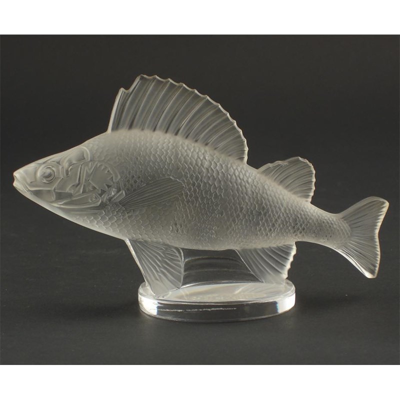 'Perche' a modern Lalique clear and frosted glass paperweight modelled as a carp etched Lalique France, small chips to fins 15cm. wide