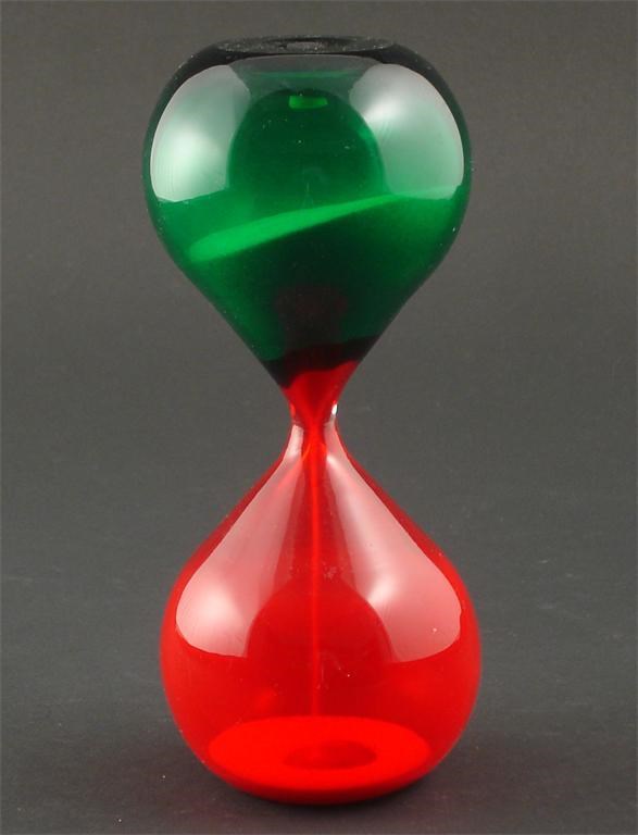 An Italian glass egg timer, probably Venini red and green sections, unsigned 19cm. high