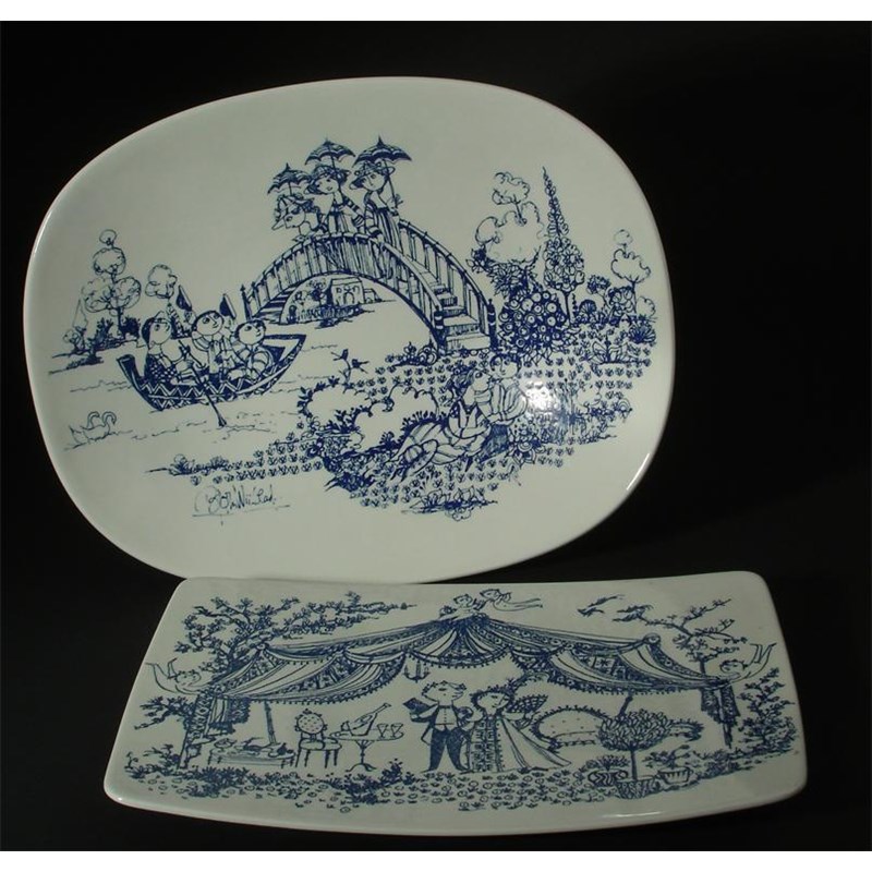 A Nymolle, Denmark platter 'Chambre Separee' designed by Bjorn Wiinblad, and another similar printed marks, facsimile signature 25.5cm. wide