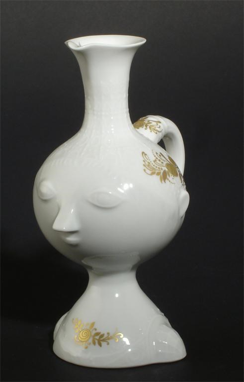 A Rosenthal Studio Line jug designed by Bjorn Wiinblad, modelled as a bust of a stylised woman, decorated in gilt printed mark 15cm. high