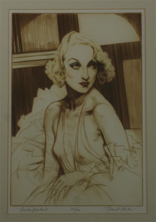 'Carole Lombard' a limited edition drypoint etching by Frank Martin framed signed, titled and number 100/100 in pencil image 40 x 27cm.