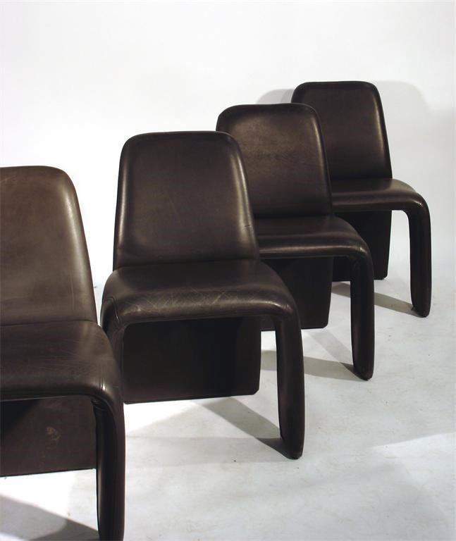 Four Italian leather dining chairs circa 1970s unsigned 80cm. high